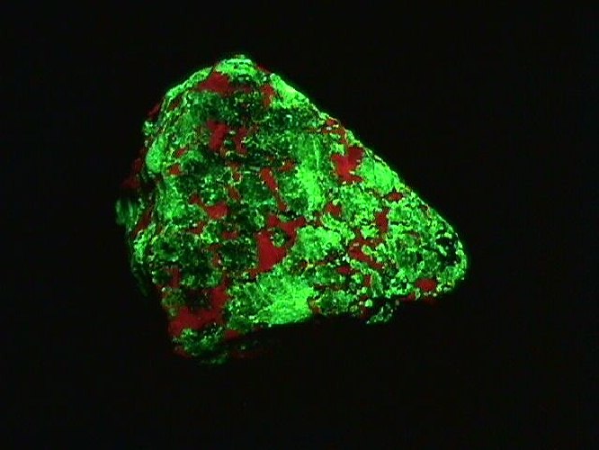 bright green fluorescing willemite along with red fluorescing